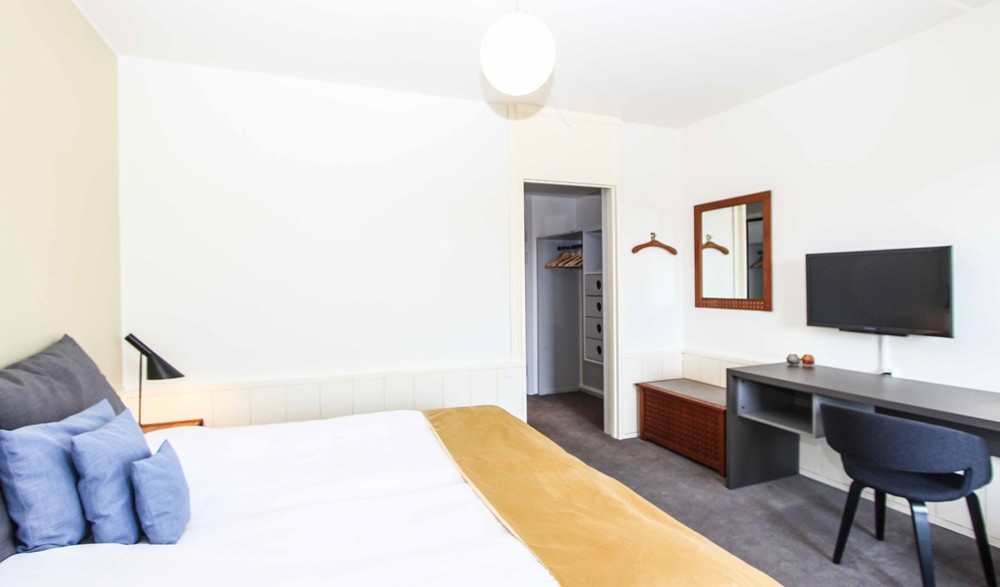 Hotellet er indrettet i moderne stil af den bornholmske designer Pernille Bülow. Glæd dig til flotte værelser hvor du kan vælge mellem værelser med fransk altan og byudsigt, værelser med balkon og havudsigt eller suiter med stue, walk-in closet, to balkoner og havudsigt. Dobbeltværelserne er beliggende i stueplan, 1. eller 2. sal. Suiterne er beliggende på 2. sal. Der er elevator til 1. og 2. sal.